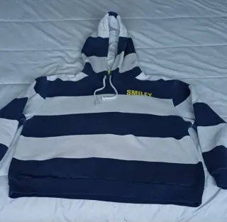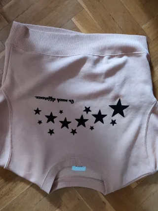 Muy bonita sudadera con capucha comprada en Zara. Se abre y cierra con cremallera. De color rosa con la inscripción East Side bordada. Está hecha de un material muy suave, tipo terciopelo. Tiene dos bolsillos delanteros. No tiene talla indicada, pero diría que es una talla XS. Yo uso una talla S/M (mido 1,68 m y peso 60 kg), y me queda un poco pequeña. Tiene dos pequeñas manchas de pintura en la manga izquierda, que se pueden ver en la última foto. Aparte de eso, está en buen estado, exactamente como en las fotos. A recoger en Barcelona ciudad, en el barrio de la Trinitat Vella. Hago envíos también. Muchas cosas chulas en mi perfil