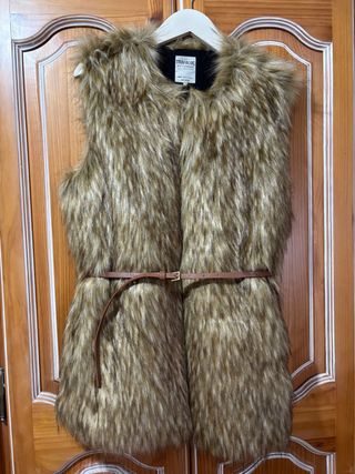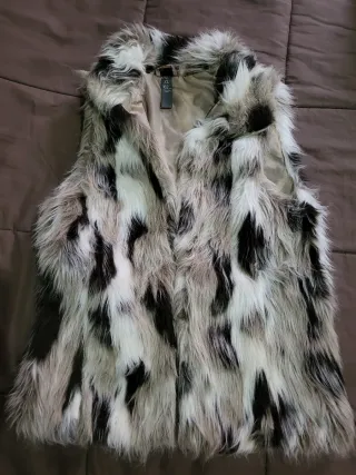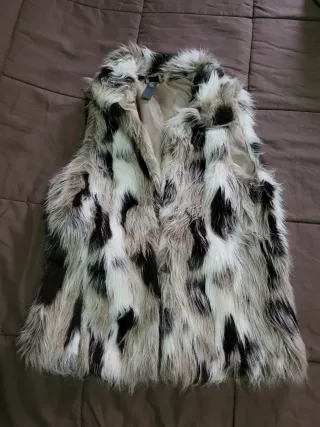 Chaleco de pelo sintético con un diseño llamativo. - Entallado. - Cierre de corchete. - Forro interior. Marron negro y blanco super combinable. Es XL de Zara Kids pero talla igual que la S de Zara. Ideal para cualquier ocasión. Muy poco uso.