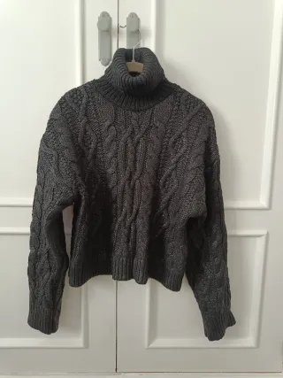 Jersey trenzado largo con cuello alto Muy cálido En perfecto estado