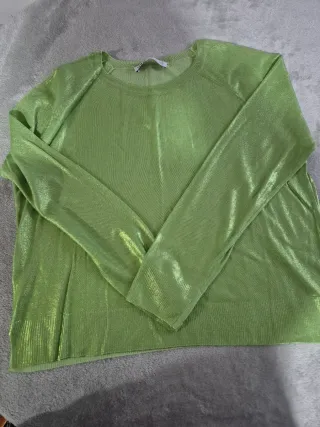 Jersey de Zara con un acabado brillante y llamativo. Perfecto para añadir un toque de color a tu armario. - Tejido ligero y con textura. - Diseño de manga larga. - Cuello redondo.