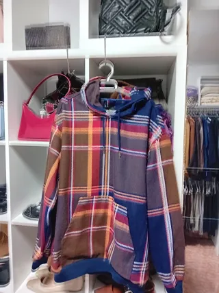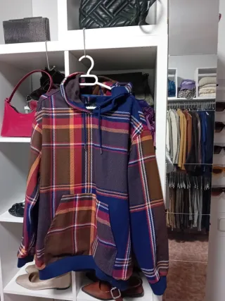 Sudadera con un diseño de cuadros llamativo y capucha. - Estampado de cuadros en tonos azules y multicolor. - Incluye dos prendas de regalo.