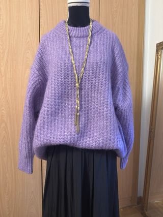 Jersey de punto grueso en color morado, con un diseño moderno y corte oversize . - Cuello redondo. - Manga larga. - Textura suave al tacto.