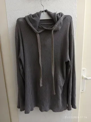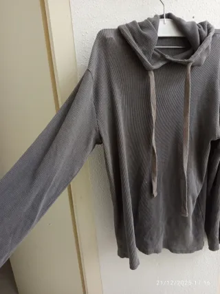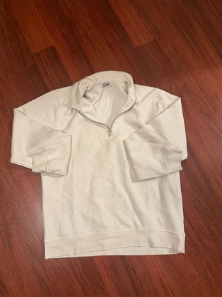 Sudadera de manga larga con cuello redondo. Es muy amplia y el tejido no es el típico de sudadera. Es nueva, sin estrenar pero sin la etiqueta. En la parte de atrás lleva una cremallera. - Diseño liso. - Corte holgado.