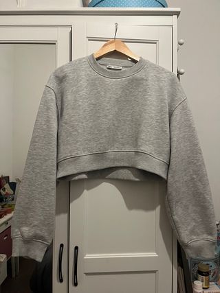 Dos sudadera cortas de Zara en talla S. Prenda cómoda y versátil.Una en color negra y otra gris las dos x 10€ son nuevas por la compra regalo mas