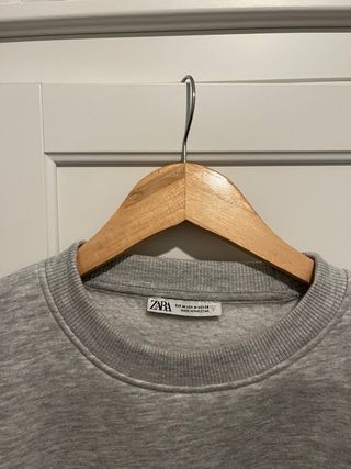 Sudadera de Zara de corte oversize, perfecta para un estilo casual. - Cuello redondo con detalle en V. - Puños y bajo elásticos. - Tejido suave y cómodo.