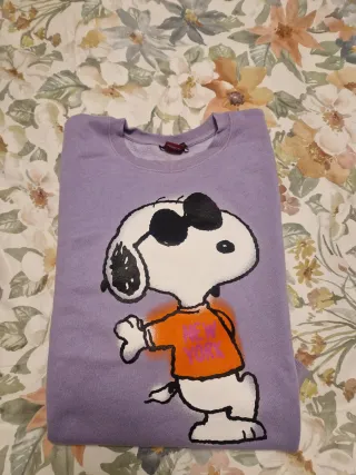 Jersey de punto gris con diseño de Snoopy en amarillo. - Cuello alto. - Manga larga. - Bajo y puños de canalé.