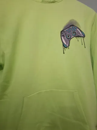 Sudadera con un diseño original de mando de videojuegos. - Color verde lima vibrante. - Estampado de mando con efecto goteo. - Bolsillo frontal.