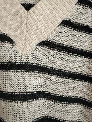 Chaleco de punto oversize de Zara con un diseño de rayas clásico. - Cuello en V. - Tejido de punto ligero. - Diseño sin mangas.