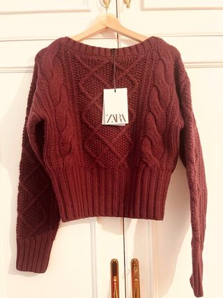 Jersey de punto de Zara con un diseño moderno y desgastado. Su corte cropped lo hace ideal para combinar con pantalones de tiro alto. - Cuello alto. - Mangas largas. - Bajo deshilachado.