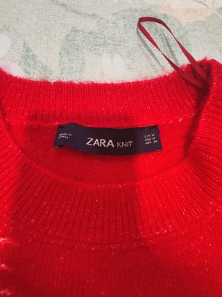 Jersey Rojo de Zara mujer con cuello redondo, manga larga, color rojo combinados, talla M, nuevo.