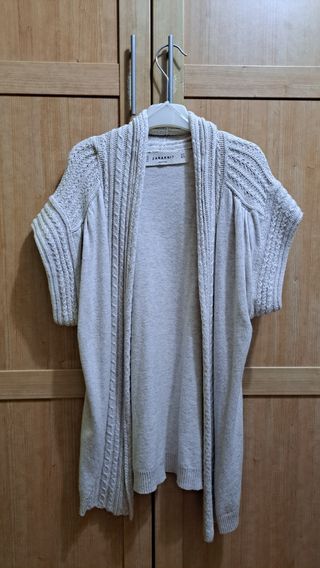 Cardigan Zara Knit Beige Manga Corta Mujer