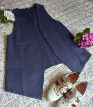 Precioso Chaleco abierto de Zara en azul marino. Diseño oversize para llevar suelto. Tejido de algodón con mezcla, con mucha caida. Ideal para dar un punto elegante a looks informales o para complementar looks de oficina. Es una talla XS-S pero da mucha talla. Medidas: Pecho 53 cm Largo delantero 90