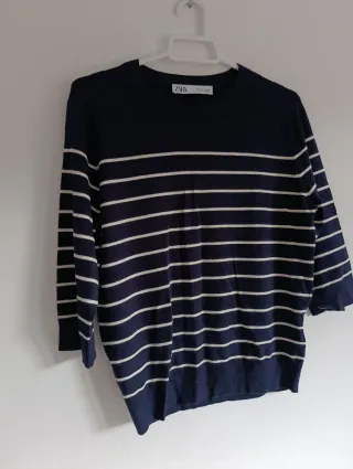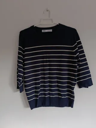 Precioso jersey de rayas de Zara. Es de color azul y azul marino. - Corte cropped - Manga larga - Tejido suave