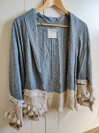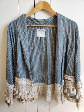 Kimono Zara con adornos hippies de la talla S. Esta en muy buenas condiciones, es perfecto para cualquier ocasión.