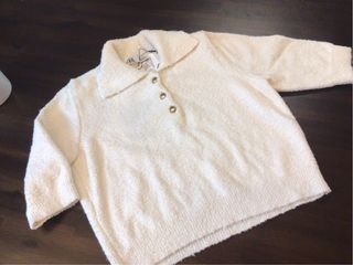 Jersey de tacto suave con cuello polo y detalle de botones dorados. Con bolsita con botones de repuesto. Sin estrenar. - Diseño moderno y cómodo. - Tejido agradable.