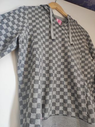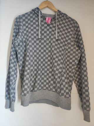 Jersey tipo sudadera con capucha y bolsillos. Estampado de cuadros grises. 50% algodón, es bastante finita, ideal para primavera o verano. Hago 2x1 por mudanza, elige dos artículos y paga sólo uno! #Tous, Zara Home, Maison du Monde, Chamilia, Thomas Sabo, Pandora, Viceroy, Mango, Bimba y Lola, Hermes, Chanel, Massimo Dutti, Gucci, Jysk, Sklum, Cortefiel, Louis Vuitton, Loewe, Punto roma, Carolina Herrera, Purificación García, Guess, Aristocrazy, Ralph Lauren, Rebaja, Regalo, Hugo Boss.