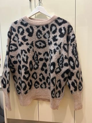 Jersey con dibujo animal print. Puesto en tres ocasiones, queda muy bonito y es facil de combinar. Talla S aunque es muy amplio.