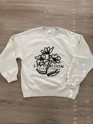 Sudadera beige con flores. Combinable con todo. Talla S/ 14-16años Nueva. Zara.