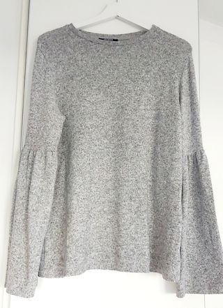 Jersey gris ZARA punto mangas con frunce
