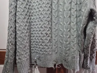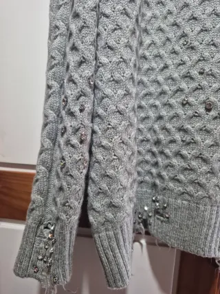 Jersey de punto grueso de Zara. Presenta un diseño con detalles de abalorios plateados abajo - Material: 100% acrílico. - Cuello redondo. - Manga larga.