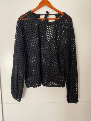 Jersey de Zara,Talla S, nuevo, con mangas anchas que terminan con un cordón y puedes rizarlo a tu gusto. El mismo cordón lo lleva también en el cuello para poderlo ajustar a tu gusto. Es un jersey muy original