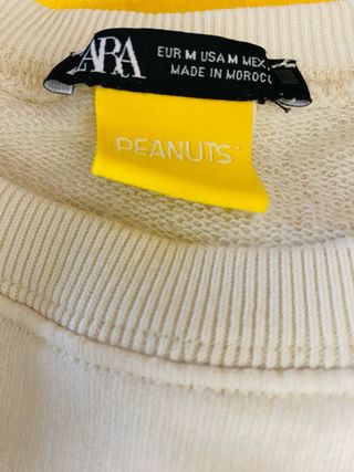 Sudadera de Zara con un diseño de Snoopy. Muy calentita. Talla S. - Estampado de Snoopy con jersey naranja. - Texto PEANUTS en la parte inferior. - Cuello redondo y puños acanalados.