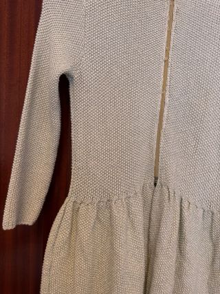 Jersey punto estructura Zara talla L. En Zara aparecía como vestido pero es demasiado corto para usarlo así. Tejido calado, cuello pico con cordón, aberturas en lateral, manga ancha abajo. Nuevo con etiqueta - Manga larga. - Escote pronunciado con cordones. - Aberturas laterales.