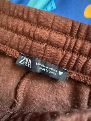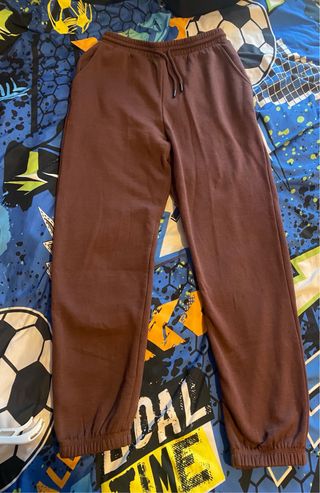 Pantalón de chándal de Zara en color marrón, talla M - Cintura con cordón ajustable. - Puños elásticos en los tobillos. - Bolsillos laterales. Sudadera corta talla L
