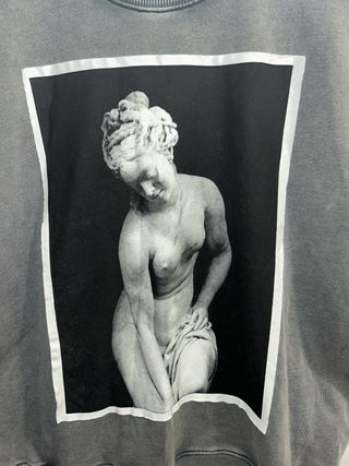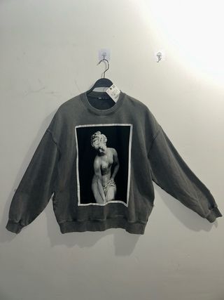 Sudadera de Zara con estampado de Venus. - Talla S. - Color gris jaspeado. - Diseño oversize.