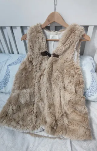 Chaleco de pelo sintético de Zara. - Diseño sin mangas. - Tacto suave y mullido. - Color marrón y gris.