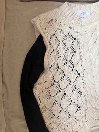 Chaleco de punto de Zara con diseño asimétrico y detalles de ochos y calados. - Combinación de punto grueso y calado - Cuello redondo.