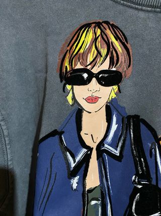 Sudadera de la marca Zara. Es de color gris y tiene un bonito estampado multicolor de dos chicas. Está en buen estado. - Talla: S