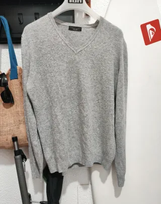 Jersey de punto fino con cuello en V. - Material: Lana. - Color: Gris. - Talla: L. *Precio NO negociable*