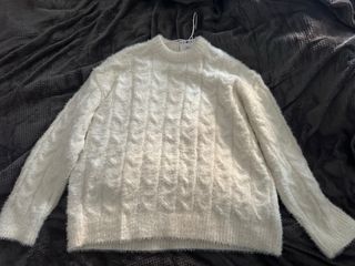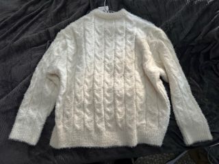 Jersey de punto trenzado en color blanco de Zara. Suave y con un diseño clásico. - Tejido mullido y agradable al tacto. - Diseño de trenzas a lo largo de toda la prenda. - Cuello redondo.