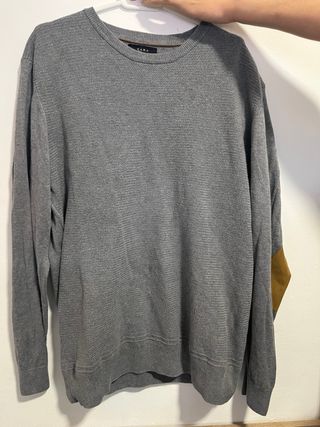 Jersey de punto fino de Zara en color gris. Presenta parches de ante en los codos. - Cuello redondo. - Puños y bajo acanalados. - Textura de punto waffle. será planchado al enviarse