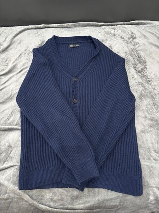 Jersey de punto de la marca Zara en color azul. - Diseño con textura. - Manga larga.