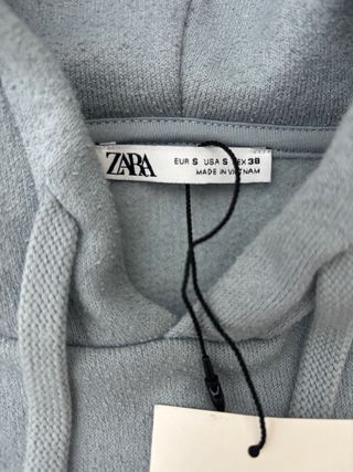 Sudadera con capucha de Zara en un bonito tono azul turquesa. Perfecta para un look casual. Nunca se ha usado!! - Capucha con cordones. - Bolsillo frontal. - Puños y bajo acanalados.