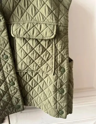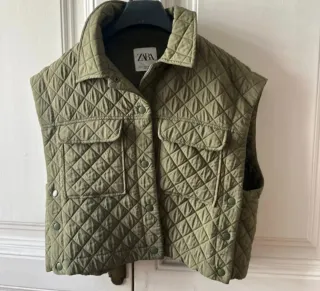 Chaleco acolchado de Zara, estilo cropped. - Diseño acolchado con rombos. - Cuello camisero. - Cierre de botones a presión. - Dos bolsillos frontales con solapa y botón. - Aberturas laterales con botones a presión.
