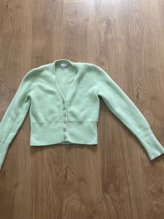 Chaqueta de punto gris de Zara. - Diseño de cuello en V. - Cierre de botones. - Manga larga.