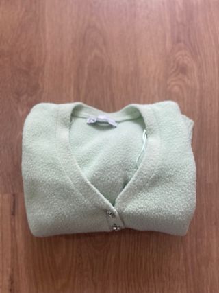 Cárdigan de punto con botones unisex. Talla 13-14 Pero queda puesta como una S No se ha usado más que 1 vez esta practimente nuevo y sin estrenar. - Cuello en V. - Manga larga. - Cierre de botones delanteros.