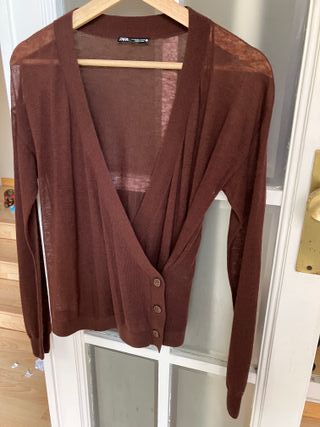 Cardigan fino de Zara (hecho 100% de lana) con un diseño cruzado y detalles de botones. USADO SOLO UNA VEZ. EN PERFECTO ESTADO - Tejido ligero - Cierre frontal con botones - Manga larga