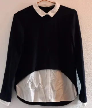Jersey de Zara con un diseño de dos piezas. - Cuello blanco tipo camisa. - Cuerpo azul marino de manga larga. - Bajo blanco asimétrico. Sólo realizo envíos No me responsabilizo de las tallas del fabricante