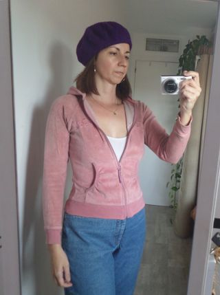 Muy bonita sudadera con capucha comprada en Zara. Se abre y cierra con cremallera. De color rosa con la inscripción East Side bordada. Está hecha de un material muy suave, tipo terciopelo. Tiene dos bolsillos delanteros. No tiene talla indicada, pero diría que es una talla XS. Yo uso una talla S/M (mido 1,68 m y peso 60 kg), y me queda un poco pequeña. Tiene dos pequeñas manchas de pintura en la manga izquierda, que se pueden ver en la última foto. Aparte de eso, está en buen estado, exactamente como en las fotos. A recoger en Barcelona ciudad, en el barrio de la Trinitat Vella. Hago envíos también. Muchas cosas chulas en mi perfil