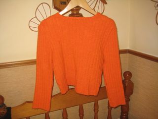 Jersey mezcla de lana de Zara en color naranja. Cuello redondo, tejido muy suave talla S. Largo de la prenda: 60 cm. Pecho 44 cm. Hombro 32 cm.