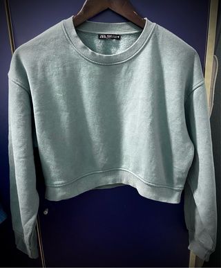 Sudadera crop top de Zara, con un diseño moderno y cómodo. Color verde (en las fotos sale un poco diferente). - Envío rápido