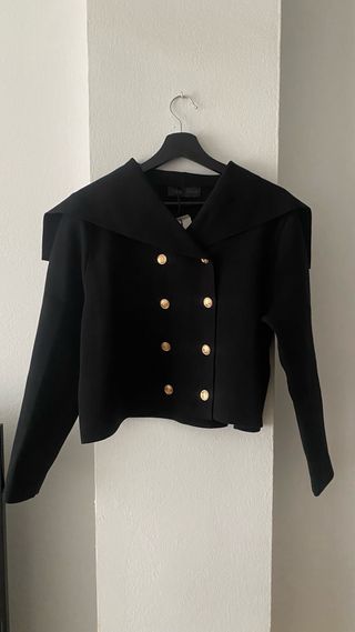 Chaqueta corta de punto con diseño cruzado. Nueva sin estrenar - se me ha pasado la fecha de devolución y me va grande. - Cierre de doble abotonadura. - Botones dorados. - Cuello estilo marinero