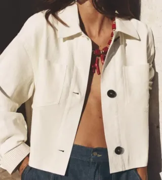 Chaqueta de corte moderno. - Diseño abierto. - Dos botones negros. - Cuello solapa.