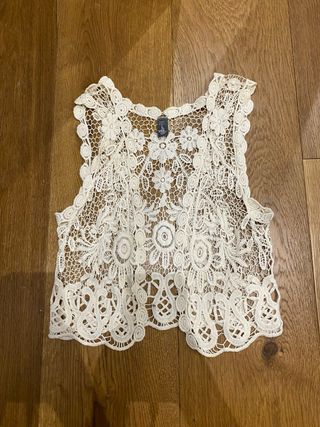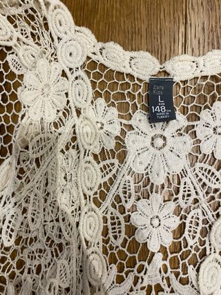 Bonito chaleco de Zara Kids con un delicado diseño de encaje de flores. - Diseño de encaje calado. - Detalle de flores. - Acabado con borde festoneado.