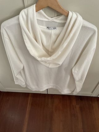 Sudadera de Zara en color blanco. - Diseño con capucha. - Cordones ajustables en la capucha. - Puños y bajo acanalados. Favorece mucho el cuello que tiene