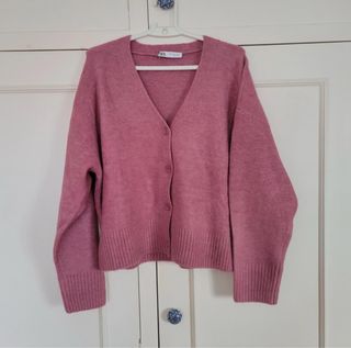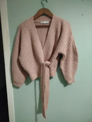 Jersey de lana de Zara, ideal para añadir un toque de color a tu armario. - Diseño tejido con cinturón. - Mangas abullonadas.